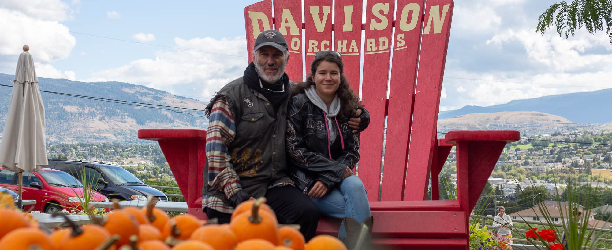 Highway 6, which we reach with the second ferry, is a dream come true for every biker: curves without end. As the curves follow each other, the landscape starts changing, mountains and forests, leaving you with a feeling of being in the middle of nowhere, becoming fields. We’ve reached the Okanagan Valley, where we’ll be staying with Jo and Rick for a couple of days so that I can show this beautiful region to Papa.