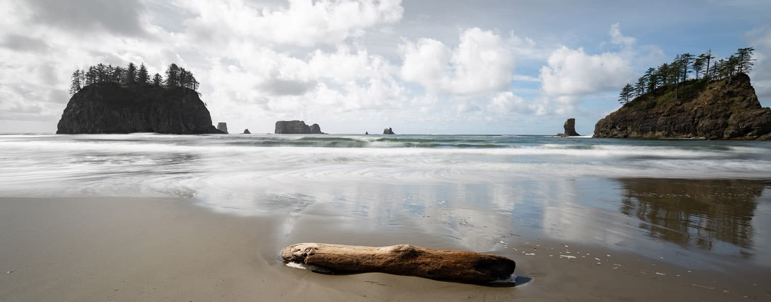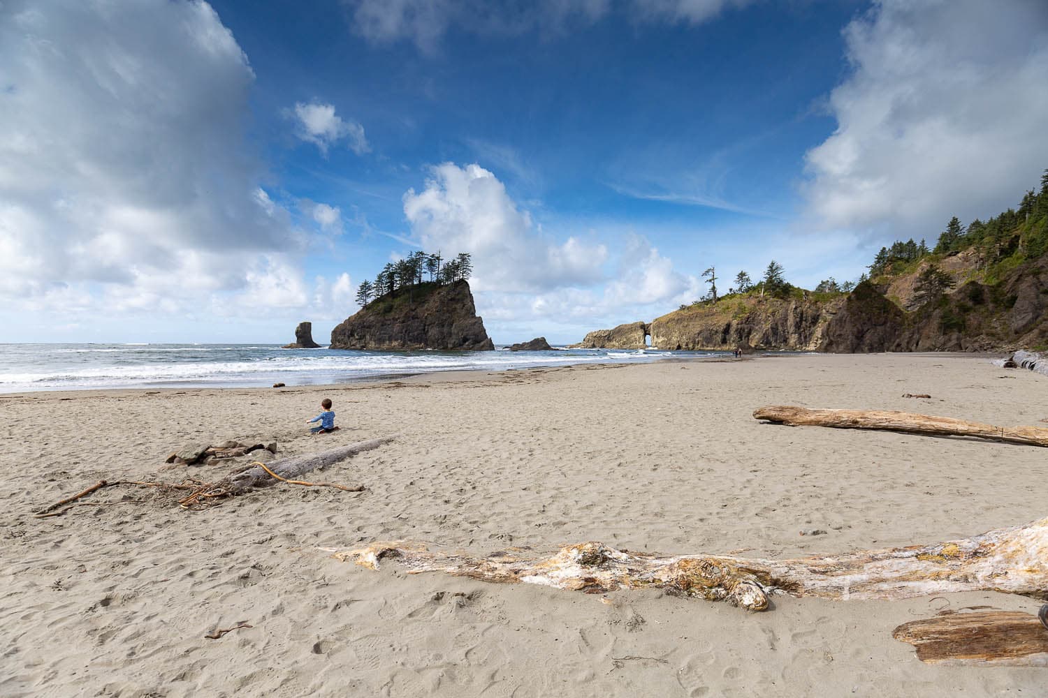 Forks ist die Heimat des Quileute-Gebietes und einer der schönsten Strände, die ich je gesehen habe: Second Beach. Der Weg dorthin führt uns durch den Regenwald. Aber der kurvenreiche Auf- und Abstieg ist es absolut wert. Ein letzter Balanceakt führt uns schließlich an den Strand.
