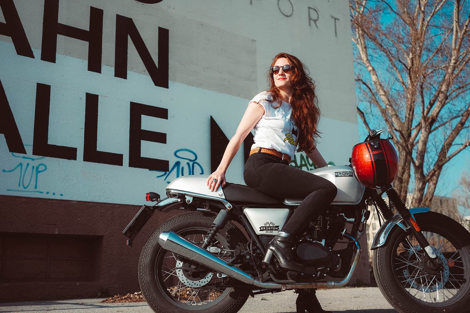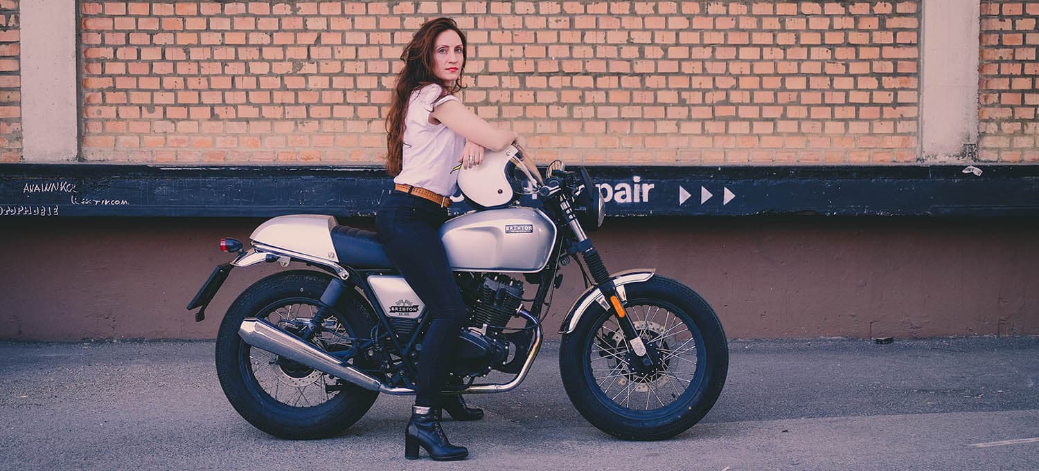 I had been looking for a suitable motorcycle for the city and occasional trips for quite some time. But I have demands: it should be stylish, elegant and cool at the same time, adventurous and yet reliable. I’m also relatively small, so I can’t or don’t want to ride every bike. And last but not least it had to fit into my budget. In search of the ideal partner, I worked my way through the various motorcycle shops in the area and one day it was there: the moment of love at first sight. In the middle of a chaotic and loving motorcycle shop she stood on a small pedestal in front of a brick wall. My Brixton 125 BX R. I immediately liked the Café-Racer look. After sleepless nights, when I always had to think of her, it was clear that she would be mine. Now I’ve been driving my Brixton for a year and I’m just happy. The perfect partnership, if you ask me.