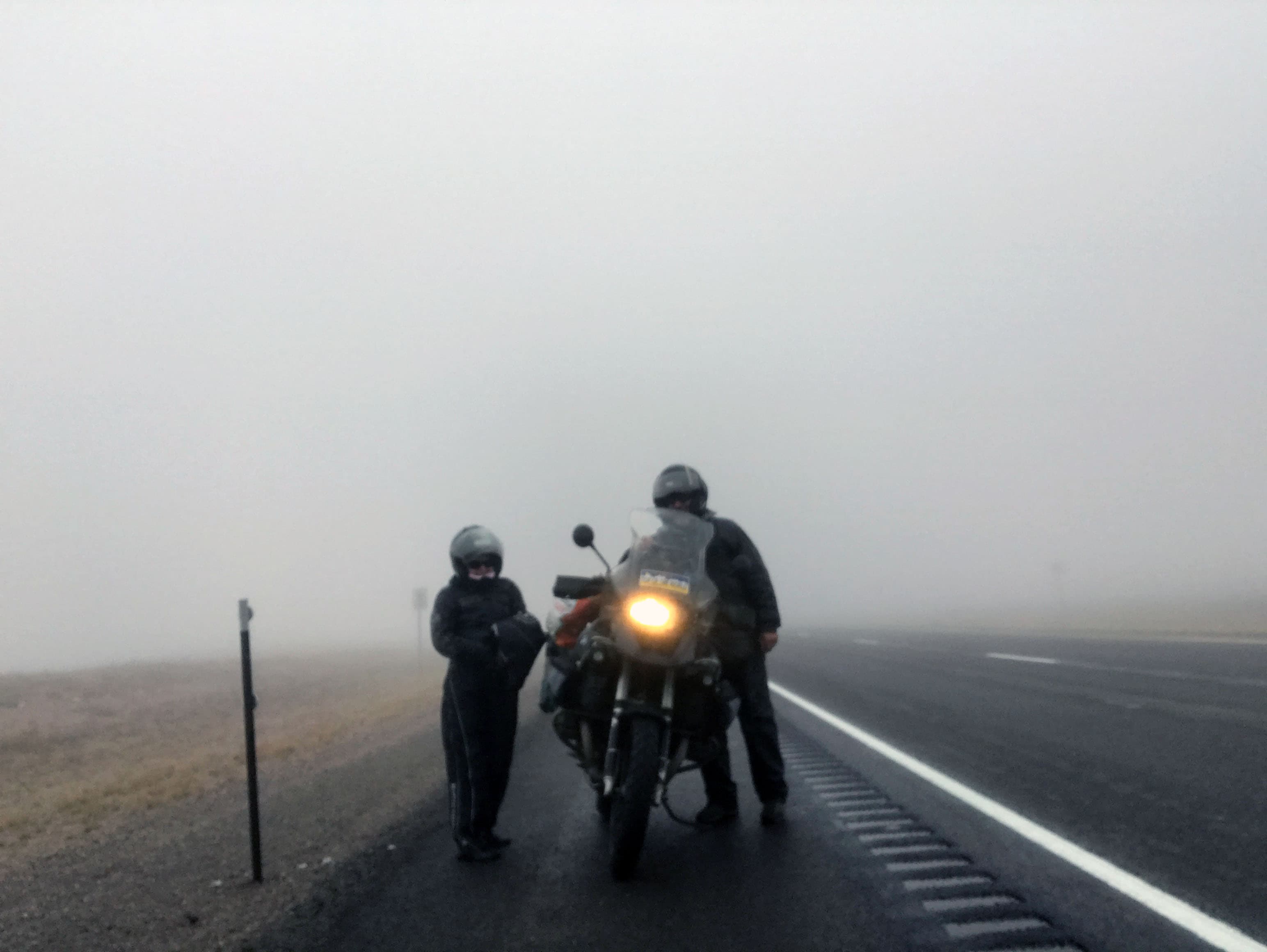 Our last stretch to Denver is the toughest. As we leave Laramie, we´re faced with a wall of clouds and fogs. It´s only going to be like that for a moment I think to myself. How terribly wrong I was! As we enter the fog, the already low temperature drops even more. We switch our warning signs on, incapable of driving faster than 40 km/h. With every passing second, I´m dreading that a car will run into us, not seeing us with all this fog.
