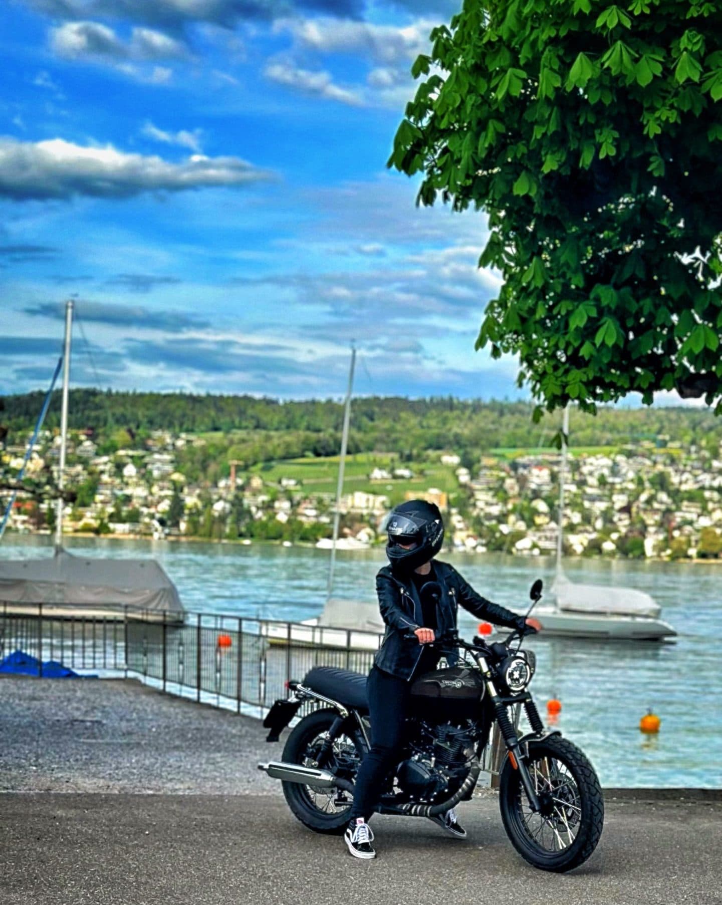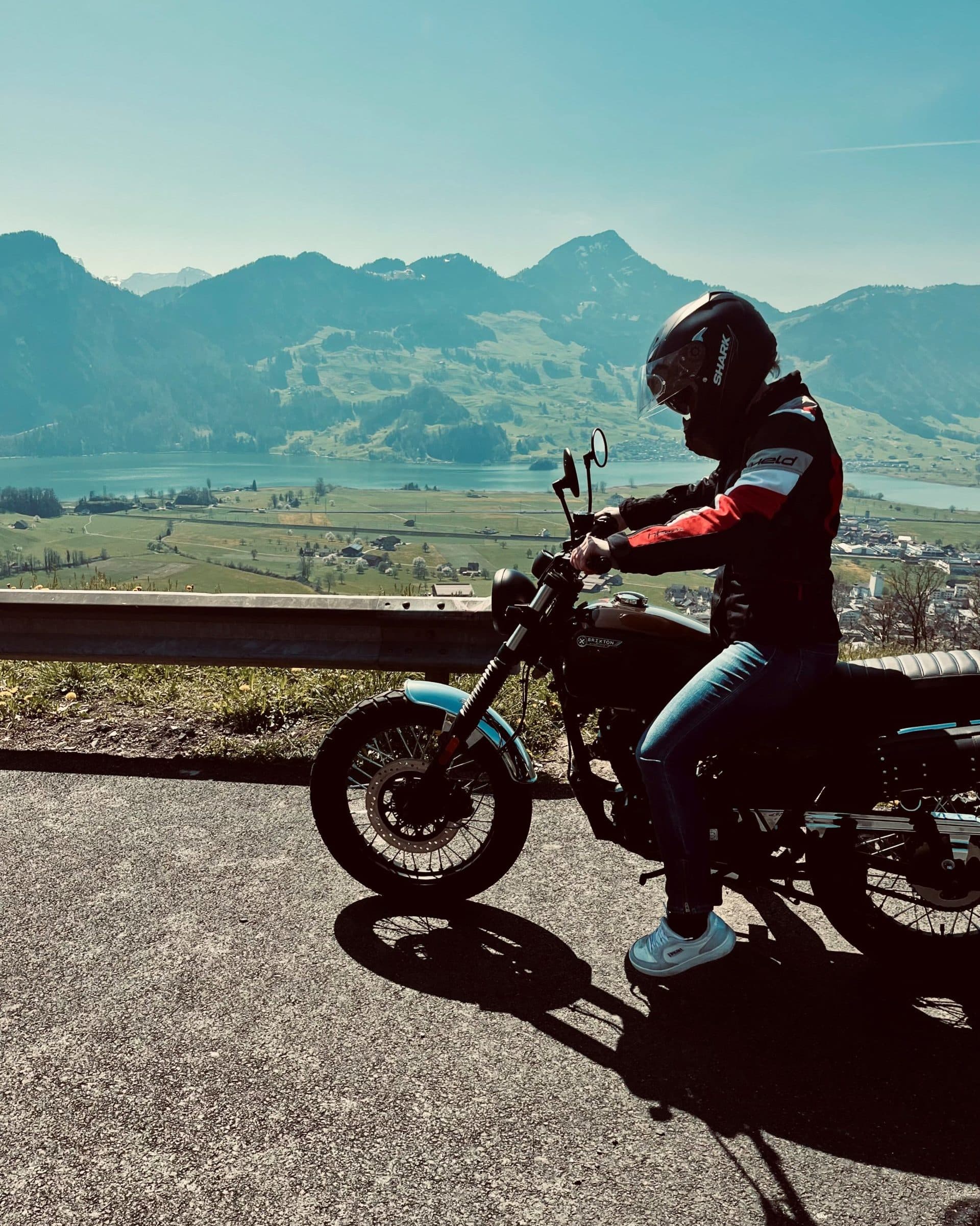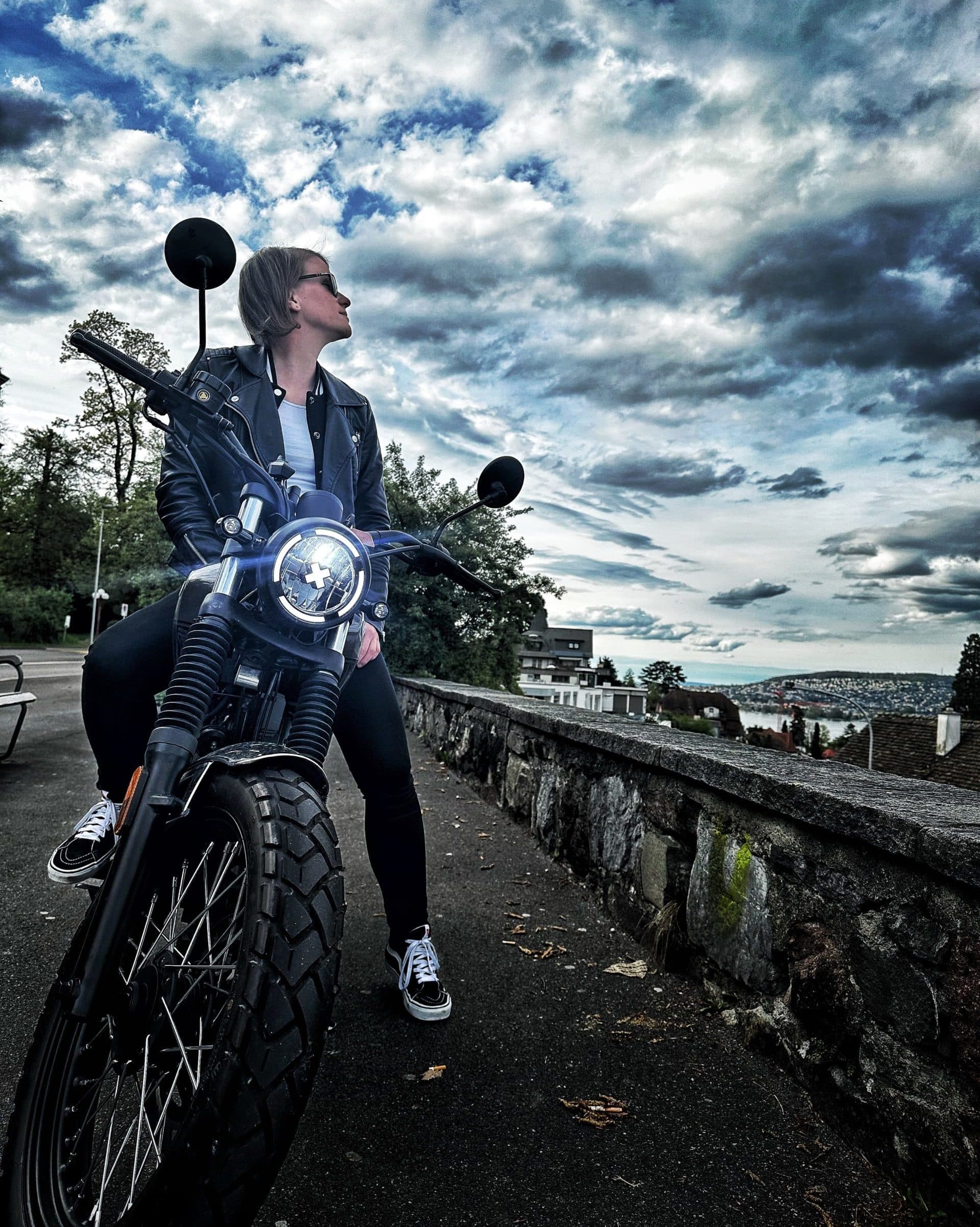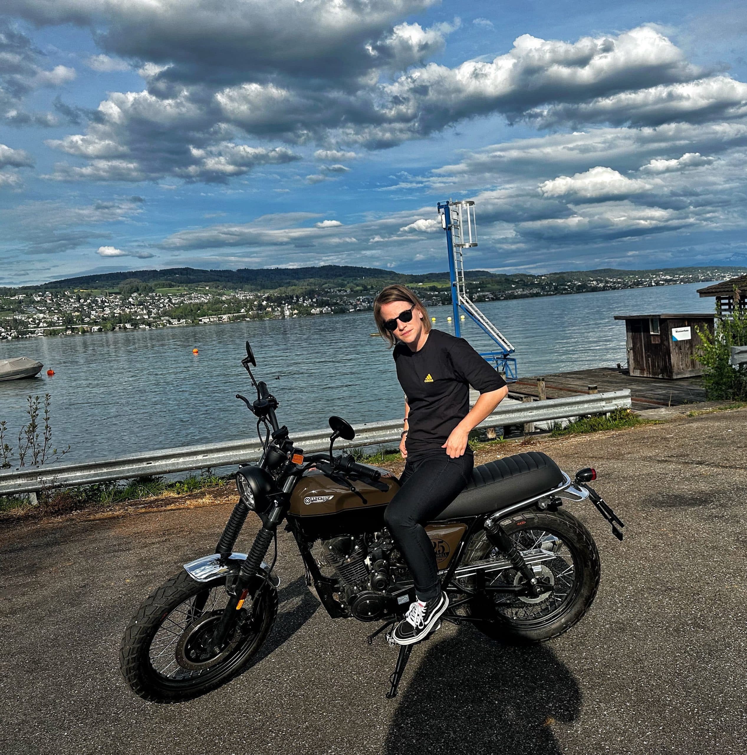 I’m Linda, I’m from Switzerland and I don’t have any children yet. I love travelling and exploring the nature without stress. I’ve had my motorcycle licence for a relatively long time, but my Brixton Cromwell 125 is something new for me. I only got it two months ago.