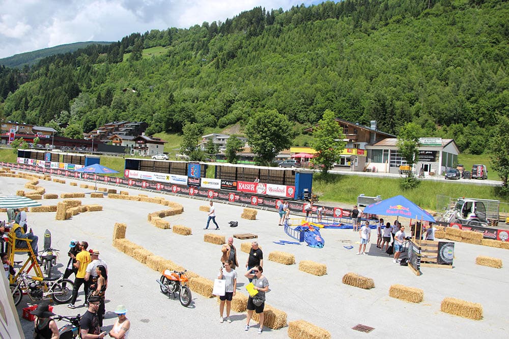The air-cooled 125 cm³ engines purr, the tyres run warm, the bikes are started. The weather holds, the rain clouds get stuck in the mountains. The sun comes through and heats up the asphalt.