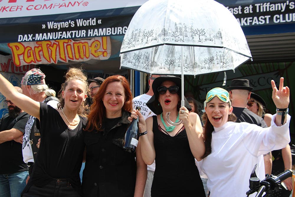In the evening, the teams and hundreds of motorcyclying enthusiasts gather in the village in front of the Nolan Main Stage and eagerly await the award ceremony. The cool girls are now a bit nervous and speculate about their place in the overall standings. The award ceremony starts.